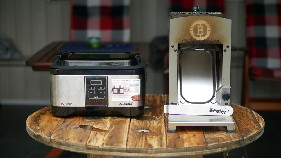 Unser Haushalt hat wieder einmal Zuwachs bekommen. In unserem Besitz ist seit kurzem ein Sous Vide Garer. Es ist die logische Konsequenz nach der Anschaffung eines Beefers (Link zu ebay) . Denn erst mit einem Sous Vide Garer wird ein Steak wirklich perfekt. Aber es lassen sich nicht nur Steaks Sous Vide garen, sondern auch Geflügel, Fisch und vieles mehr. Bei uns kommt er aber hauptsächlich bei der Steak Zubereitung zum Einsatz.