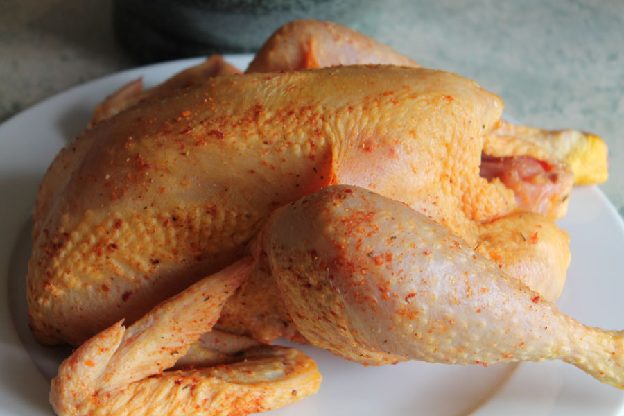 Mit dieser Gewürzmischung das Hähnchen innen und außen einreiben.