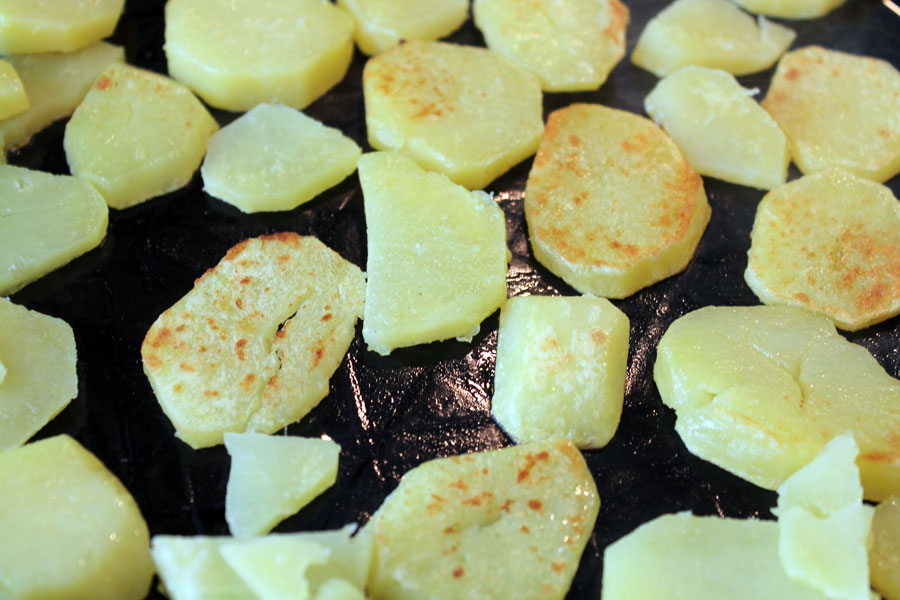 Tipp: Die Kartoffeln müssen nicht so kross und dunkel gebraten werden. Es reicht eine leichte Röstung.