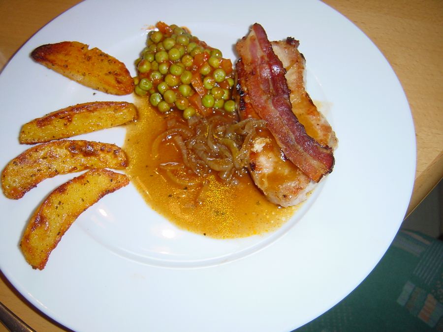 Tipp: Dazu passen Kartoffelecken und Erbsengemüse.