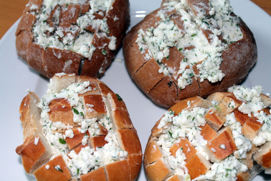 Die Brötchen mit der Feta Kräutermischung füllen.