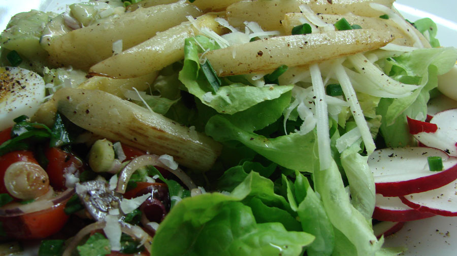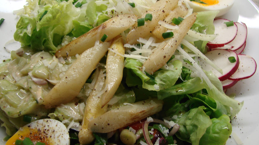Bunter Salat mit gebratenem Spargel