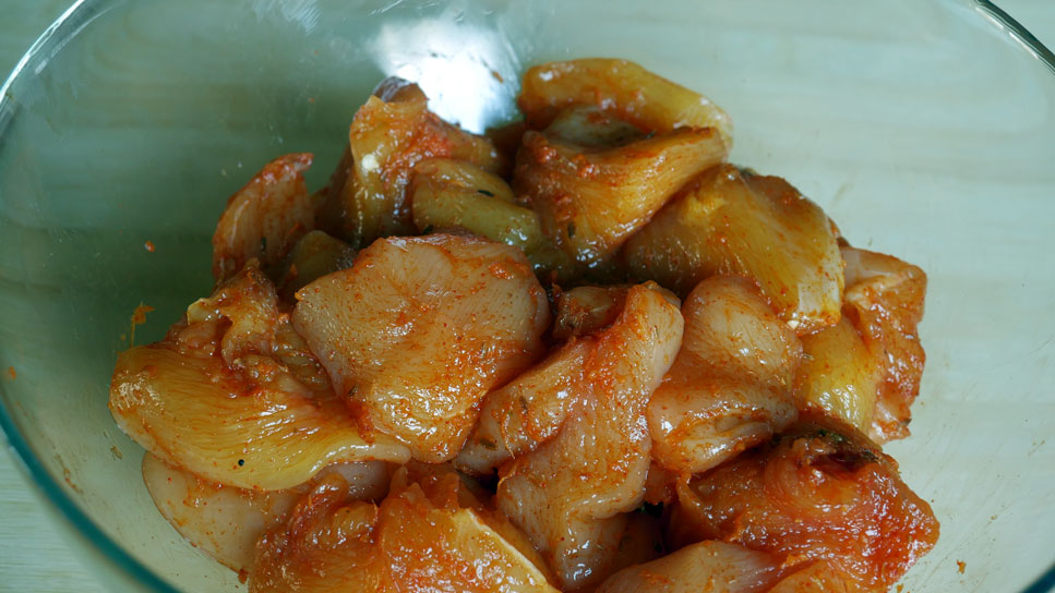 Abgedeckt im Kühlschrank eine Stunde marinieren lassen.