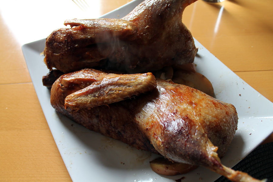 Nach ca. 120 Minuten waren meine Enten durchgegart.