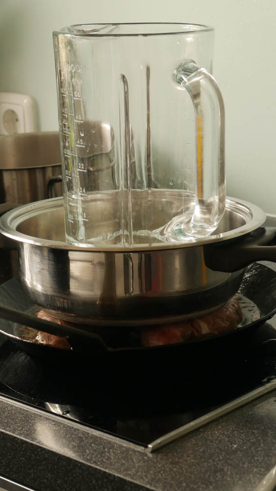 Tipp: Dazu müsst ihr fast das Maximum aus eurem Herd herausholen, das heißt höchste Stufe. Vorsicht das Fett spritzt ordentlich und kann sehr schmerzhaft sein, wenn es euch trifft.