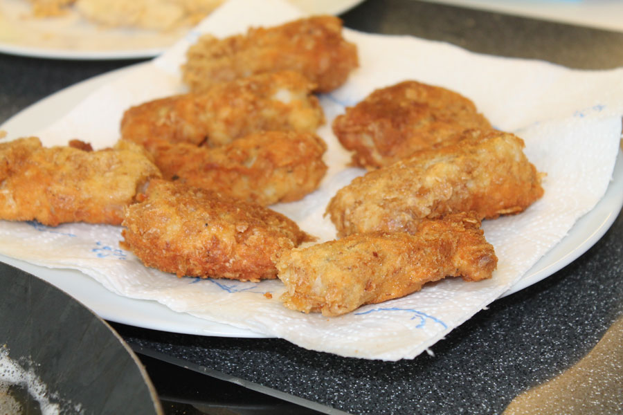 Zum Schluss in der Semmelmehl-Cornflakes-Mischung wenden.