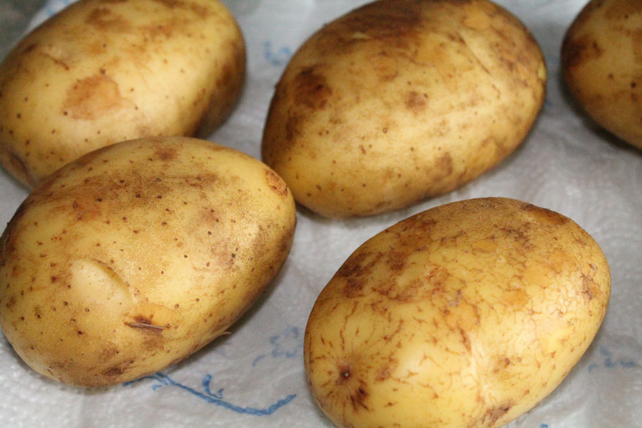 Die Kartoffeln gut waschen, am besten mit einer Bürste den Sand unter fließendem kalten Wasser abrubbeln.