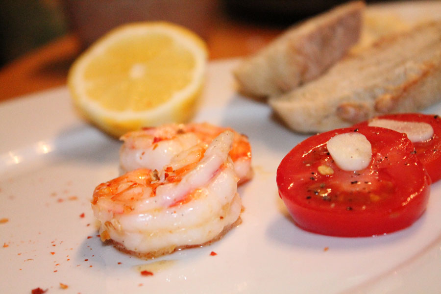 Zu diesen Garnelen in Gewürzbutter schmeckt sehr gut frisches Baguette.
