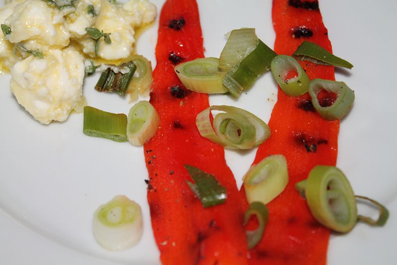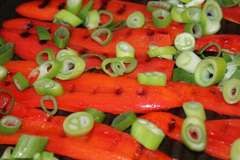 Die Paprikastücke von beiden Seiten kurz grillen und vor dem Anrichten mit Fleur de sel würzen.