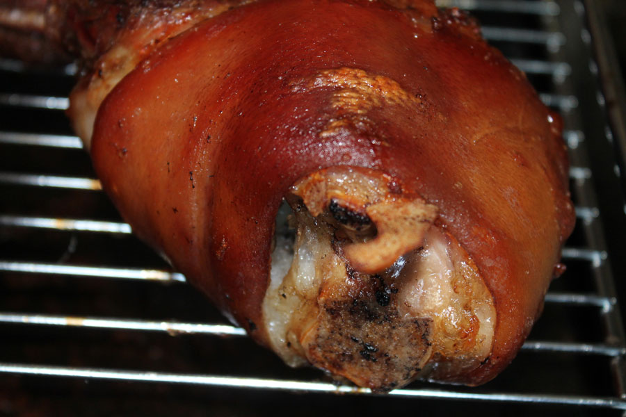Tipp: Eine Grillhaxe ist innen schön zart und saftig und außen schön knusprig wenn man die Haxen erst in Salzwasser und Gewürzen vorgart und dann im Backofen auf dem Ofengitter kross brät.