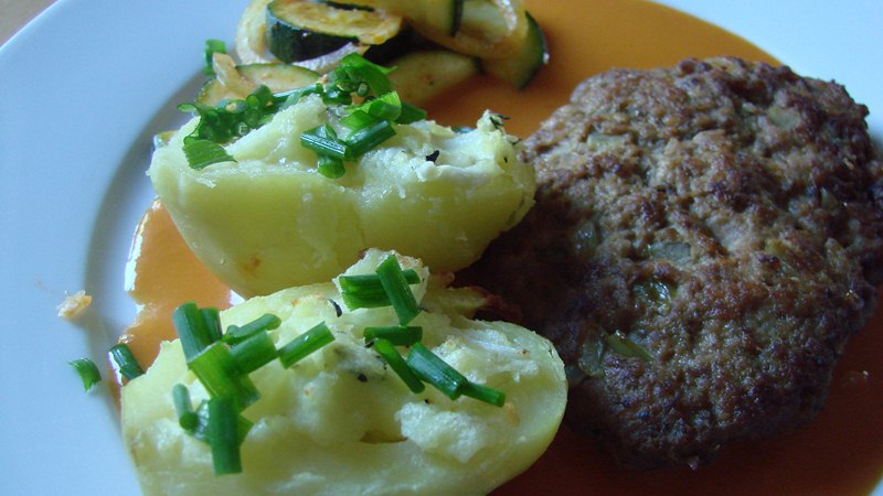 Aus der Hackmasse Kugeln formen, dann platt drücken und in heißem Öl bei mittlerer Hitze von beiden Seiten goldbraun braten.