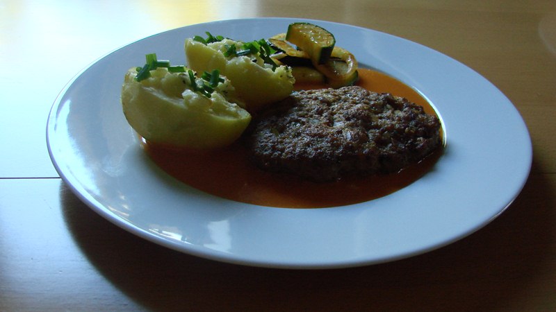 Tipp: Die Hackmasse kann man auch ohne Brötchen herstellen, die Hacksteaks werden dann etwas fester, mit Brötchen etwas lockerer.