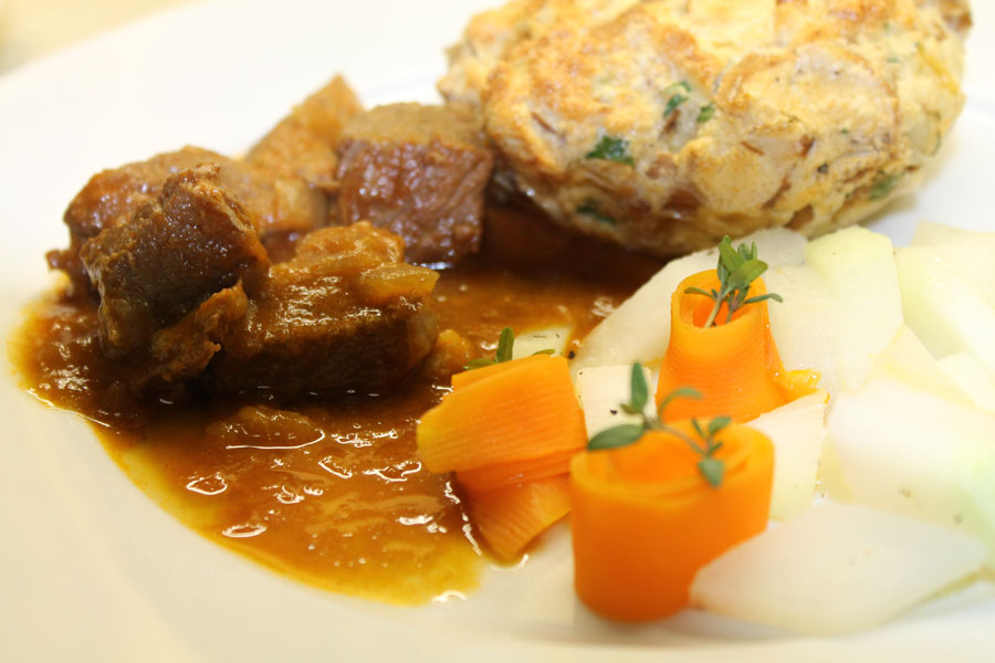 Diese Haferlknödel schmecken sehr lecker, außen sind sie leicht knusprig und innen sehr locker. Sie passen zu allen Schmorgerichten, ich habe sie mit ungarischem Gulasch serviert und es war köstlich.