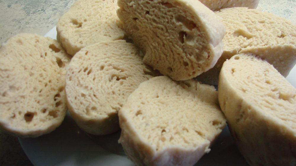 Die Klöße nach dem Herausnehmen sofort mit einem Faden zerschneiden oder aufreißen, damit sie nicht zusammenfallen.