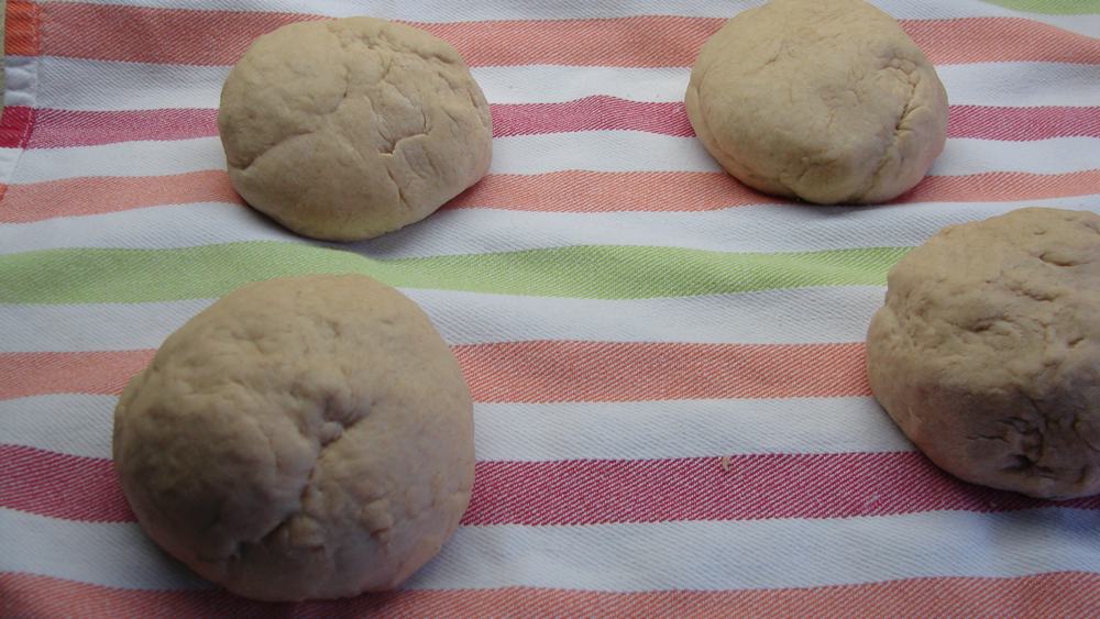Den Teig noch einmal mit bemehlten Händen durchkneten und zu ca. 5-6 Klöße formen.