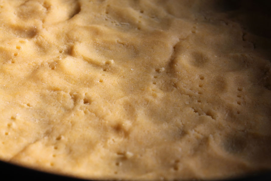 Den Teig mit einer Gabel mehrmals einstechen.