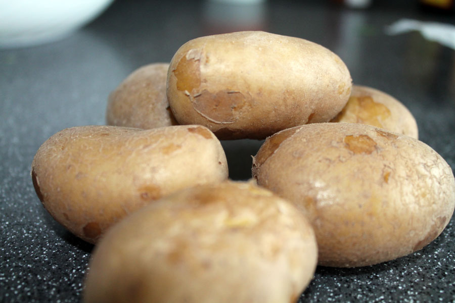 Die Kartoffeln mit Schale am besten mit einer Bürste in kaltem Wasser gut reinigen.