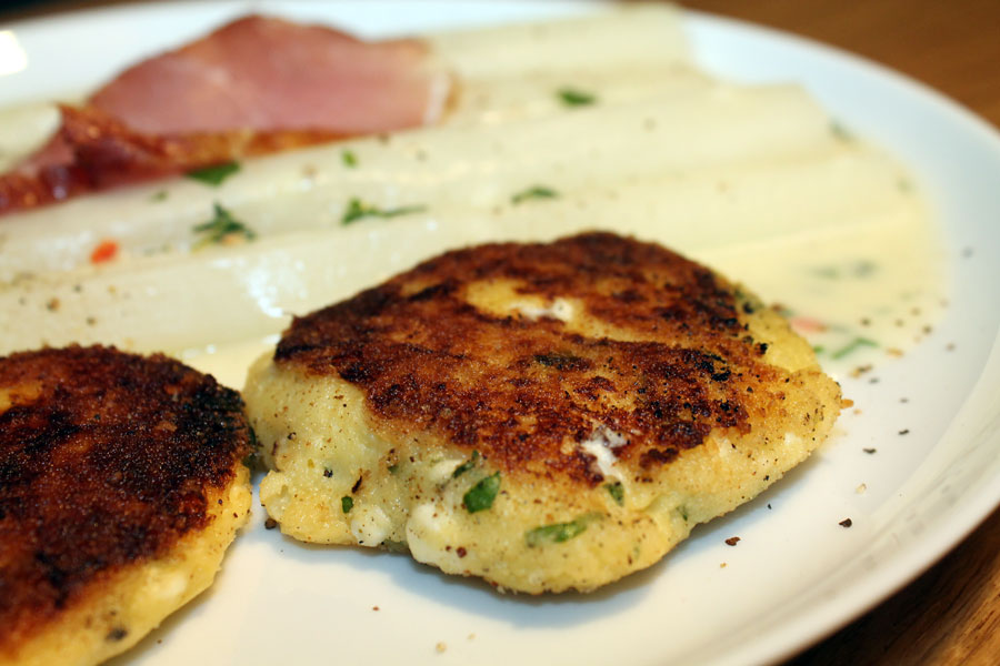 Diese Kartoffeltaler sind durch den Schafskäse eine herzhafte Beilage zu allen Sorten Gemüse aber auch Fleisch- und Fischgerichten. Echt lecker sind sie mit einem kleinen Salat, so esse ich sie am liebsten. Aber auch die Variation mit frischem Spargel war sehr gelungen. Diese Taler sind super schnell zubereitet und falls man Kartoffeln vom Vortag übrig hat wiedermal eine gute Resteverwertung.