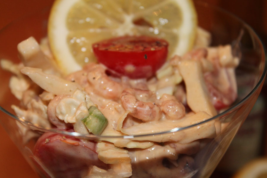 Cocktails sind nicht immer ein Getränk. Als Cocktail kann man auch verschiedene kalte Gerichte, sowohl als Vorspeise als auch als Hauptspeise verstehen. In der heutigen Zeit werden Sie meist aus verschiedenen gegarten Krusten- oder Schalentieren zubereitet. Natürlich eignen sich auch die verschiedensten Fleischsorten zur Cocktailzubereitung, meistens wie auch in meinem Rezept ist eine würzig pikante Cocktailsauce mit die wichtigste Basis für diesen Cocktail.