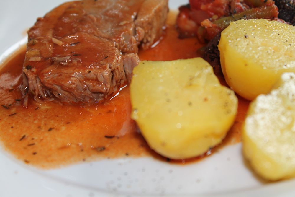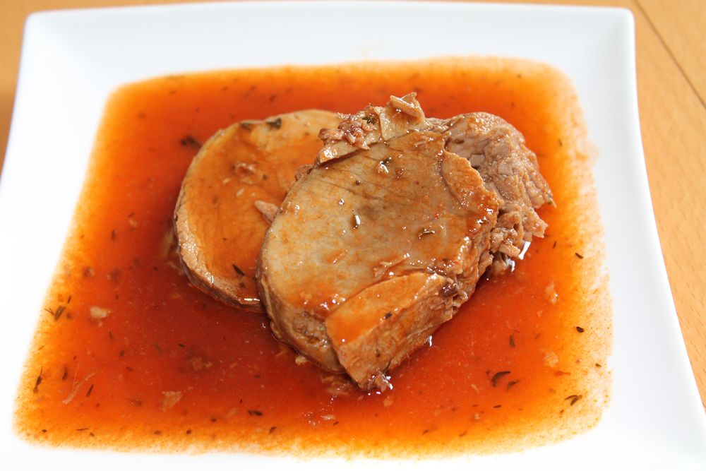 Tipp: Am besten das Fleisch und die Sauce auf vorgewärmten Tellern servieren. Ich habe diese Lammkeule mit Tomaten Bohnengemüse und Rosmarinkartoffeln serviert.