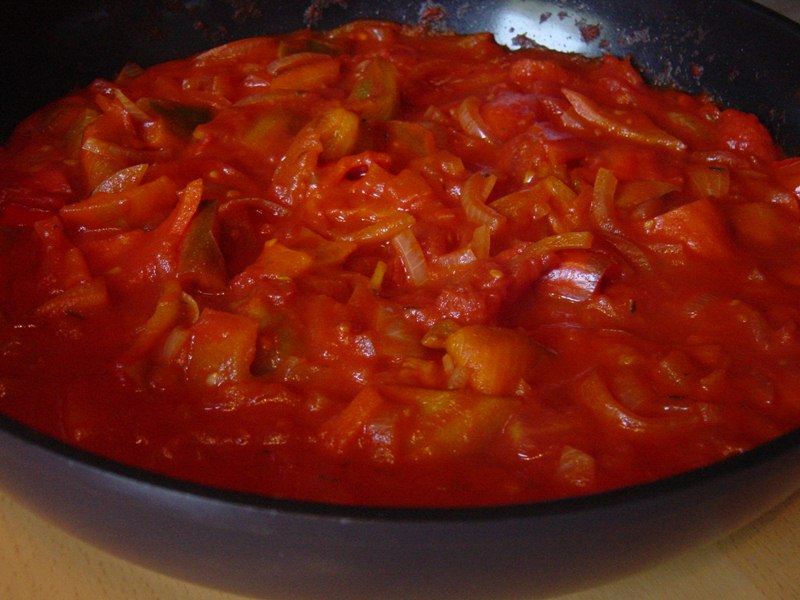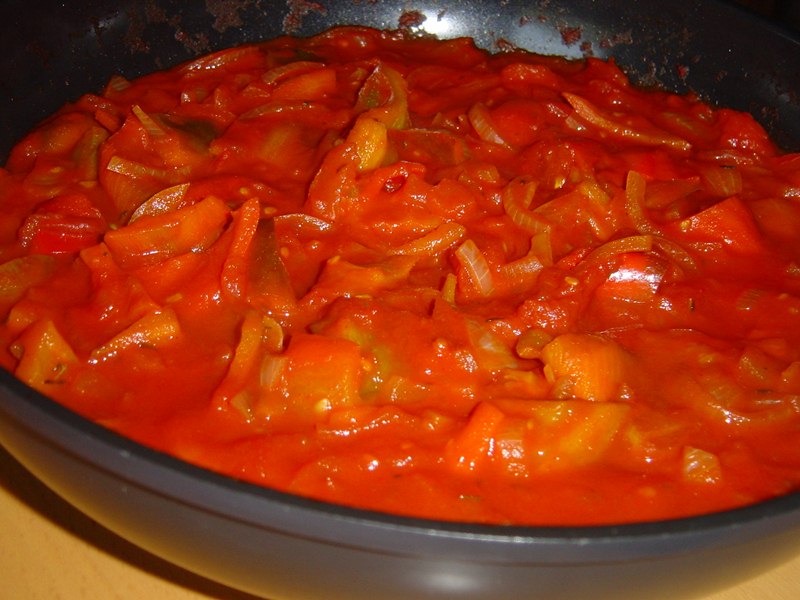 Danach die passierten Tomaten, Salz und die frischen Tomaten dazugeben und alles bei geringer Hitze weich schmoren.