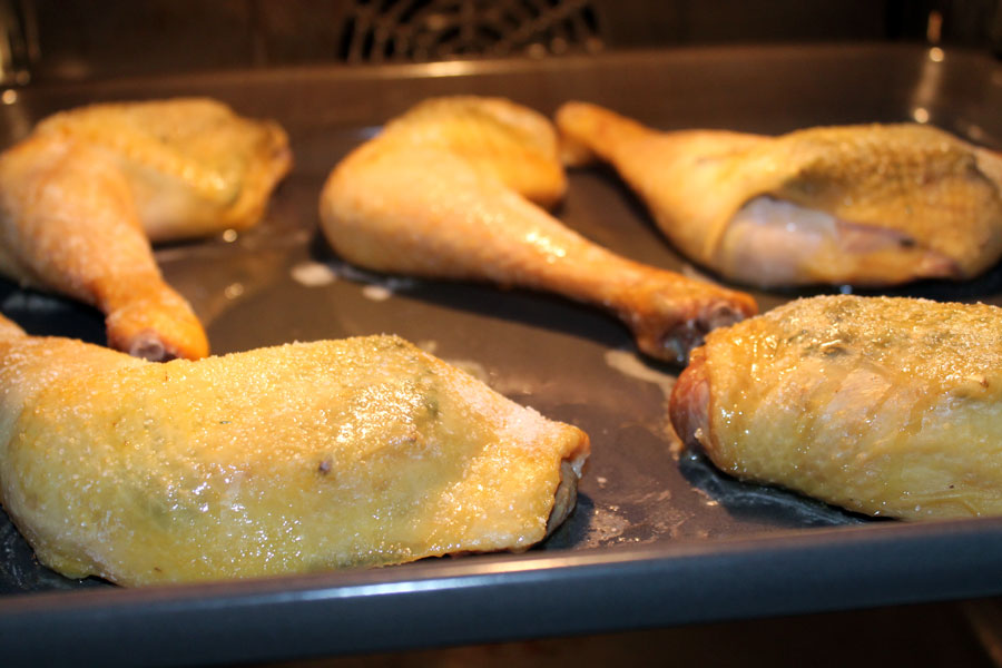 Für mein Rezept habe ich zuerst die Maishähnchenkeulen unter fließendem kaltem Wasser gesäubert und dann mit Küchenpapier trocken getupft.