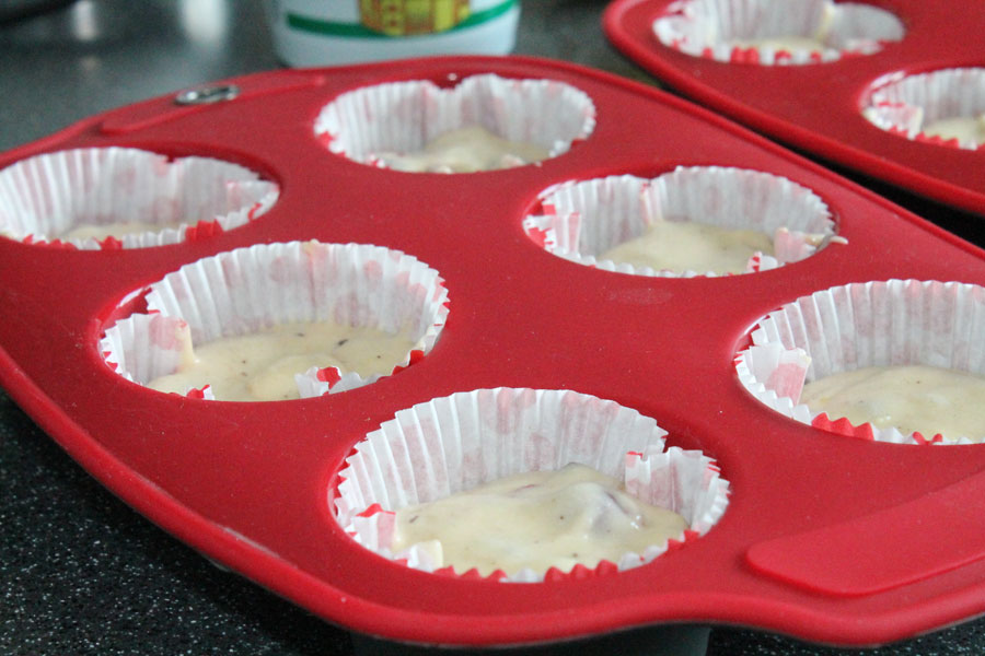 Den Teig in die Förmchen füllen.