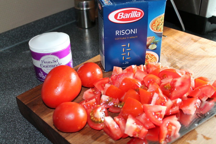 Als Pasta habe ich Risoni gewählt, das sind kleine Nudeln in einer Reiskornform.