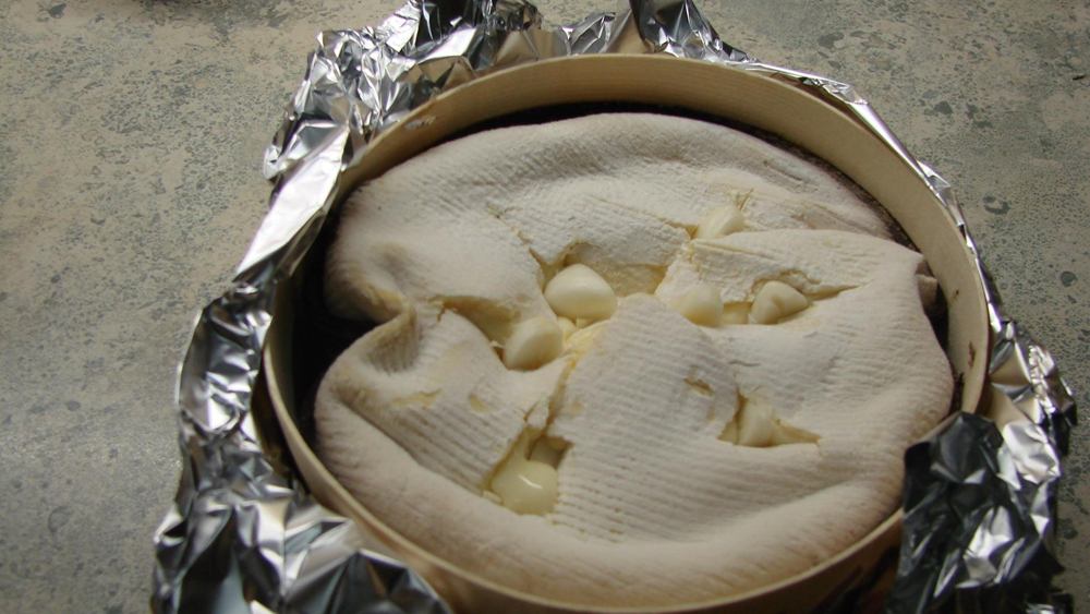 Ca. 30 Minuten den Käse im Ofen backen bis das Innere des Käses zerlaufen ist.
