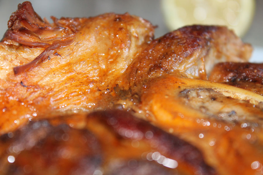 In der letzten ½ Stunde den Deckel abnehmen, den Rosmarin und die Zitronenschale dazugeben und alles weiterschmoren lassen.