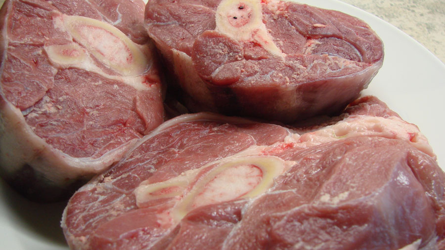 Die Kalbsbeinscheiben waschen und trocken tupfen.