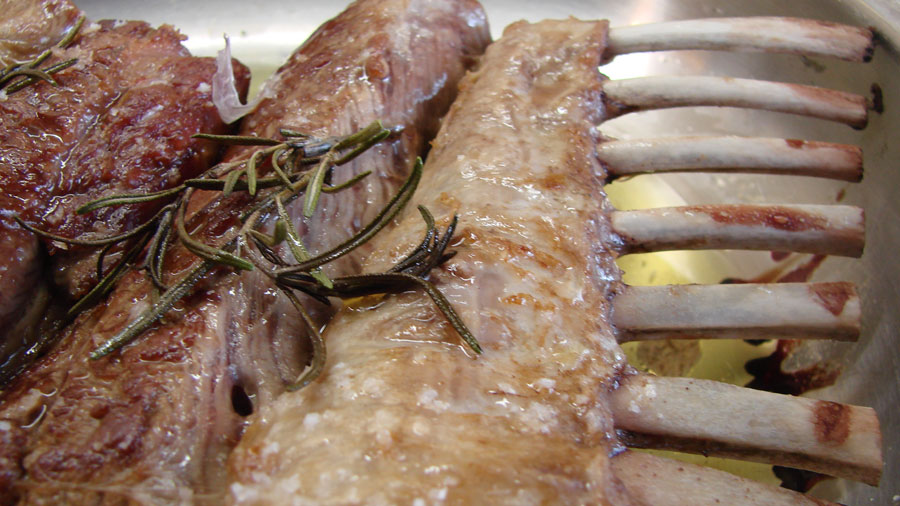Das Lammcarree in Öl von allen Seiten gut anbraten.