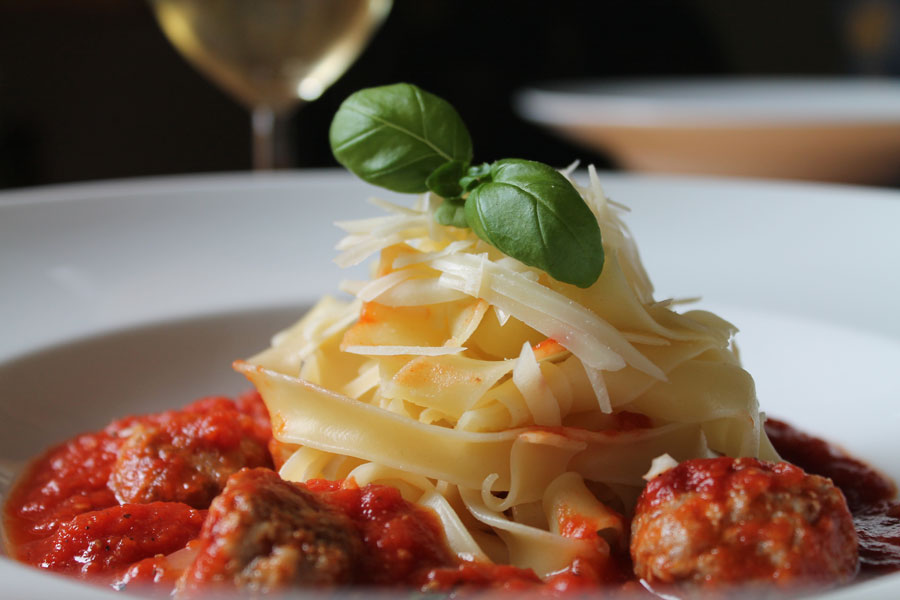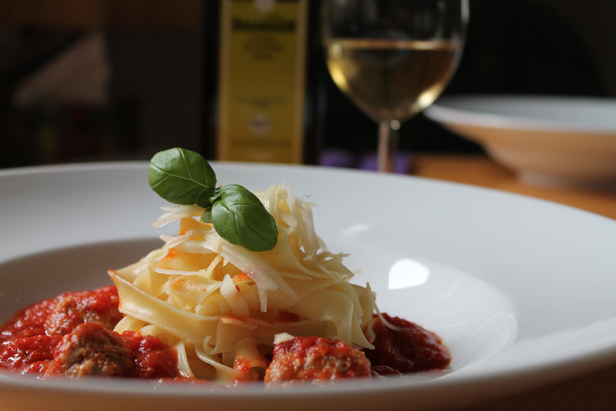 Pasta mit Tomatensauce und Hackfleischbällchen