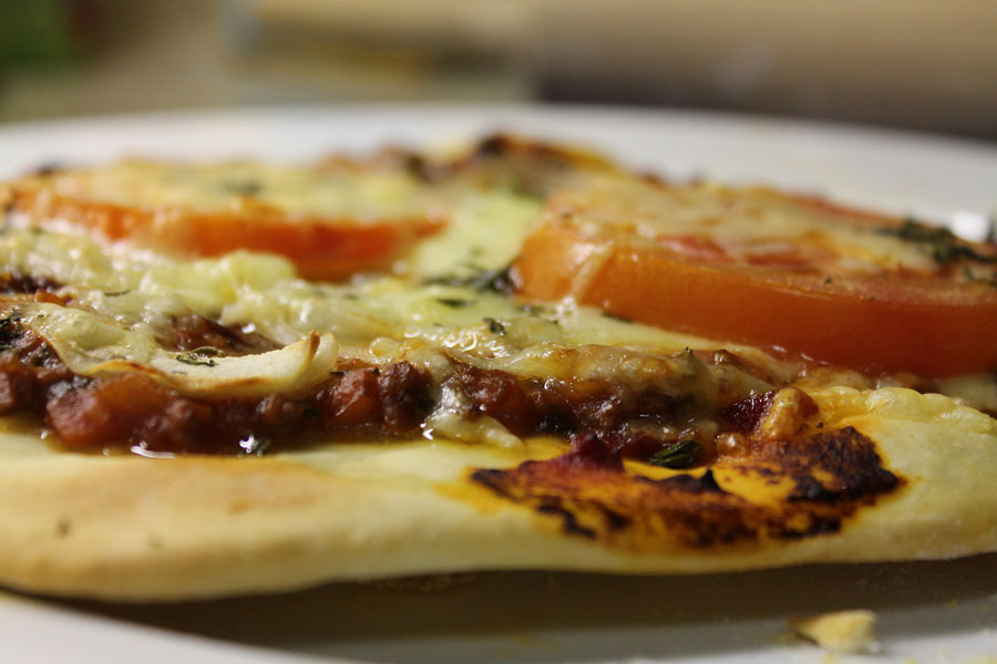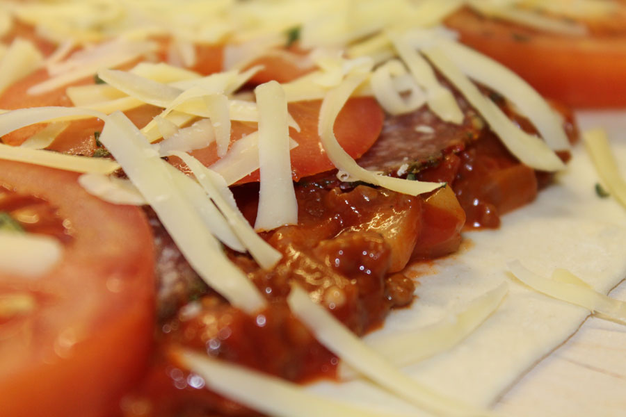 Die Pizza mit den Zutaten je nach Geschmack belegen, bis auf einen Rand von ca. zwei Zentimetern.