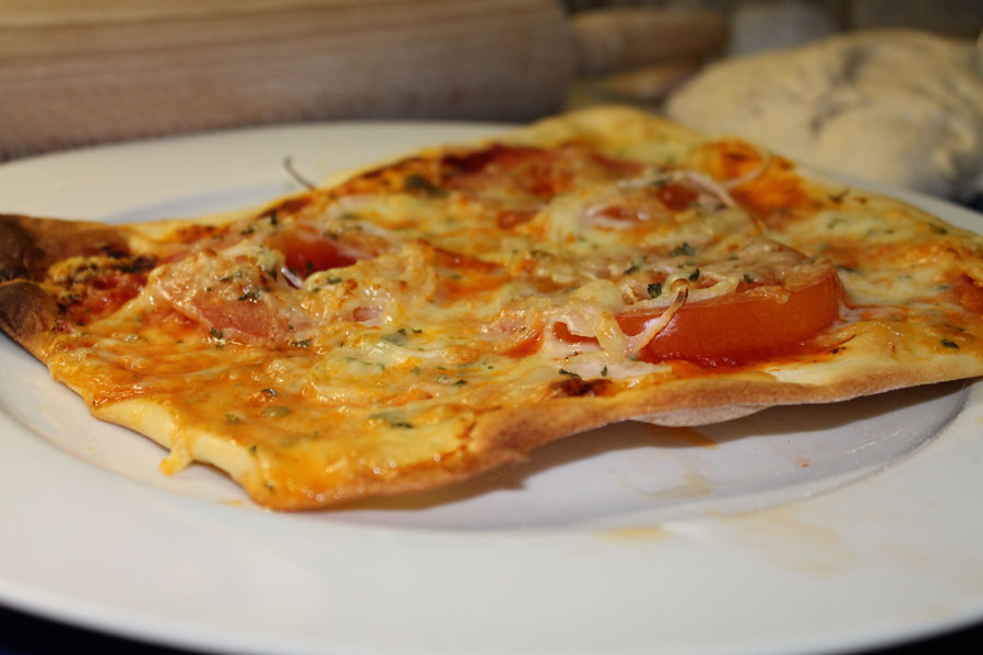 Diese Pizza ist so lecker wie beim besten Italiener. Der Teig ist im Handumdrehen zubereitet. Man sollte nur etwas Zeit einplanen, da man den Teig eine Stunde gehen lassen muss. Auch backe ich meine Pizza auf einem Pizzastein (Link zu Amazon) im Backofen. Somit erzielt man das gleiche Resultat wie aus einem Steinbackofen einer Pizzeria. Die Pizza wird wunderbar knusprig, der Teig wird locker und wirft Blasen.