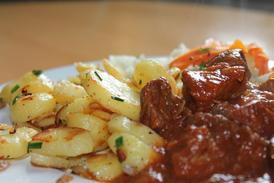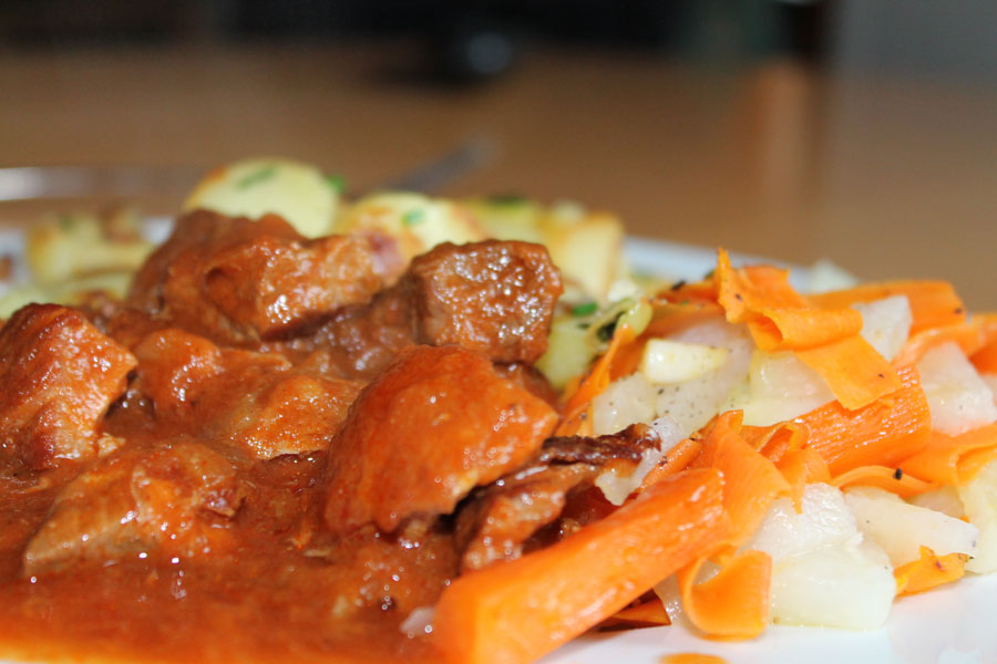 Als Beilage habe ich Basmati Reis serviert, man kann aber auch Pommes Frites dazu reichen.