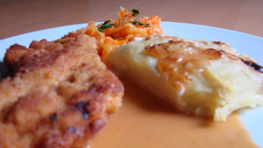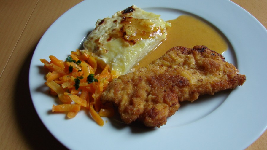 Putenschnitzel mit Kartoffelgratin