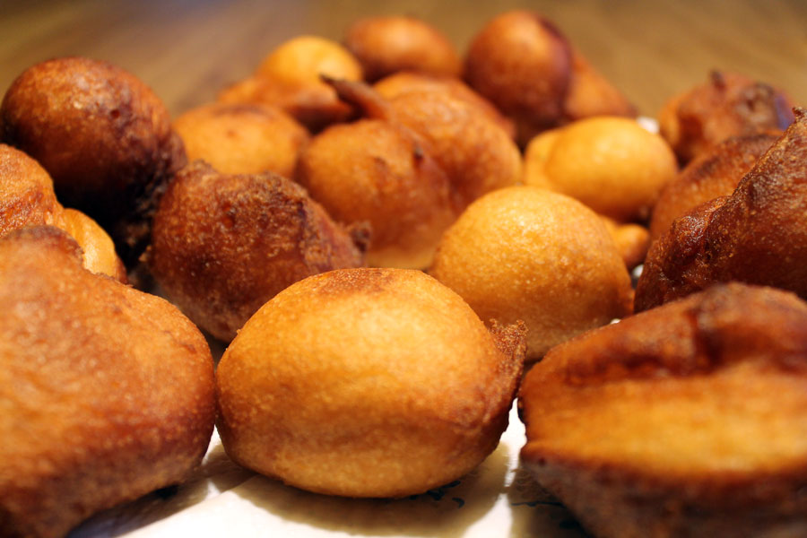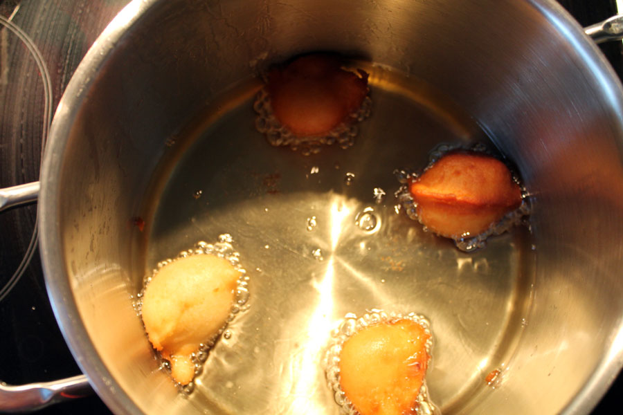 Tipp: Bei zu heißem Fett werden die Bällchen von außen zu dunkel und innen ist der Teig noch roh.
