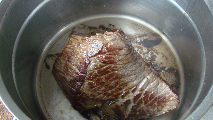 Das Fleisch von Sehnen und Fett befreien und mit Steinsalz würzen.