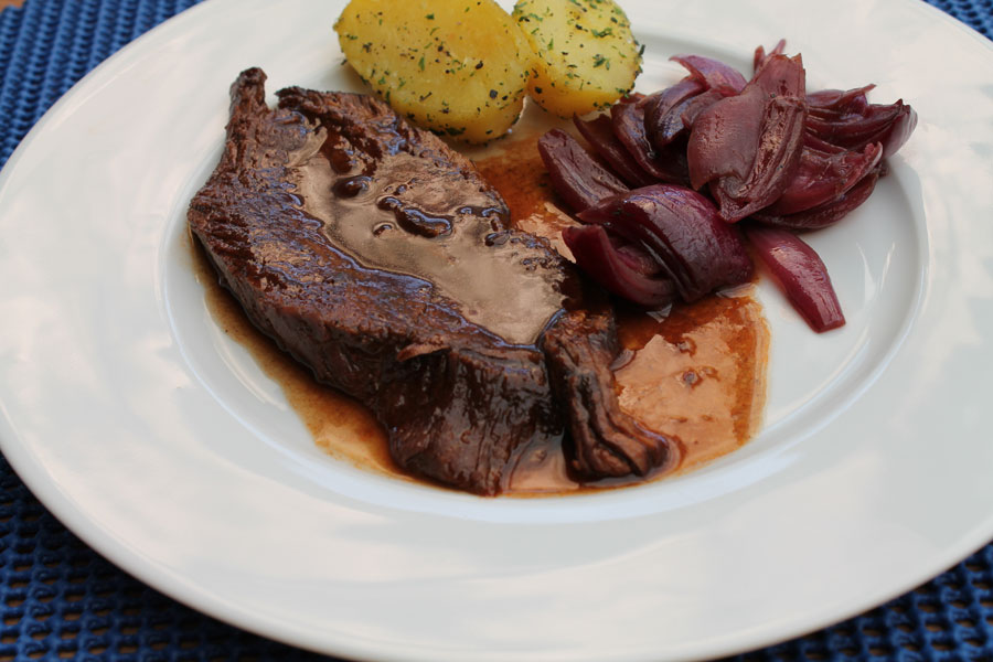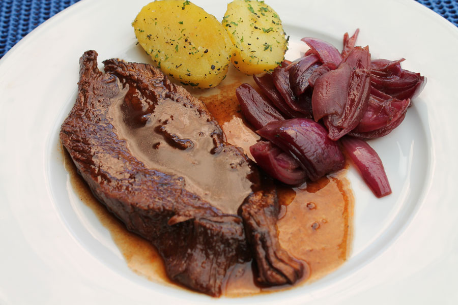 Rinderbraten mit Portweinzwiebeln ist die etwas mediterane Antwort auf das deutsche Rezept vom Rinderbraten. Probieren Sie, und Sie werden begeistert sein.