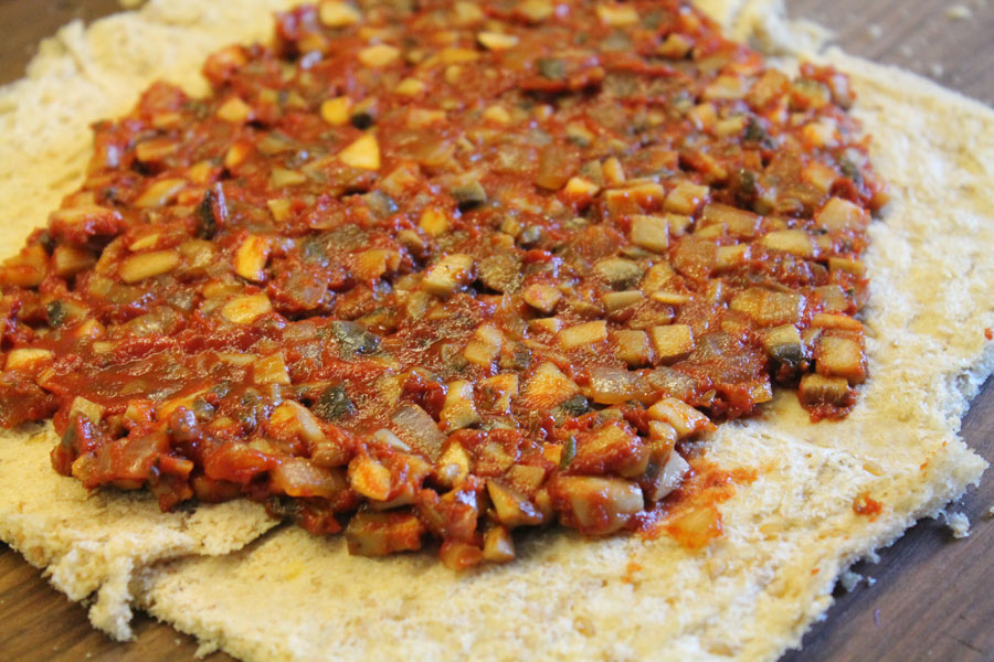 Auf die Brotscheiben die Pilzmasse streichen.