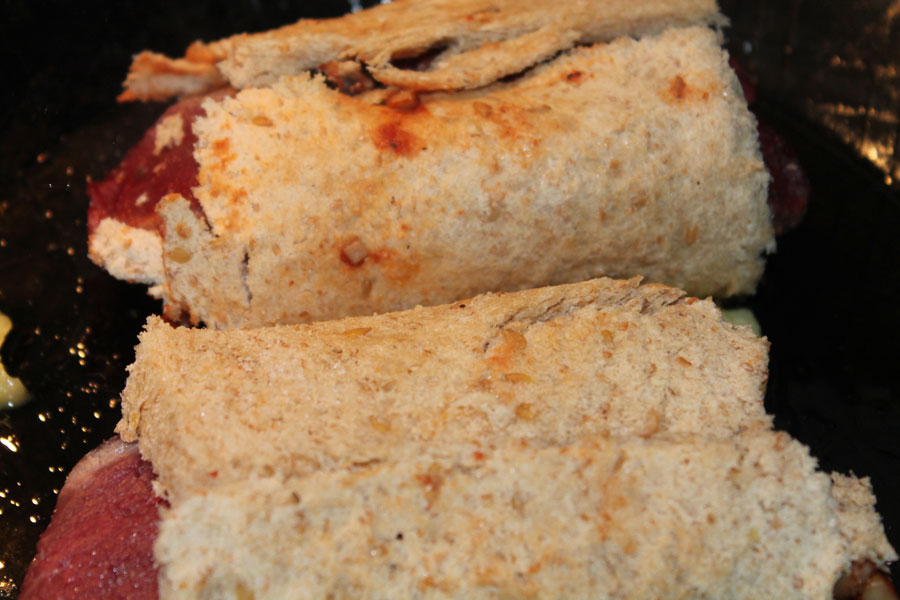 Das Rinderfilet darauf legen und die langen Seiten des Filets in dem Brot fest einrollen.