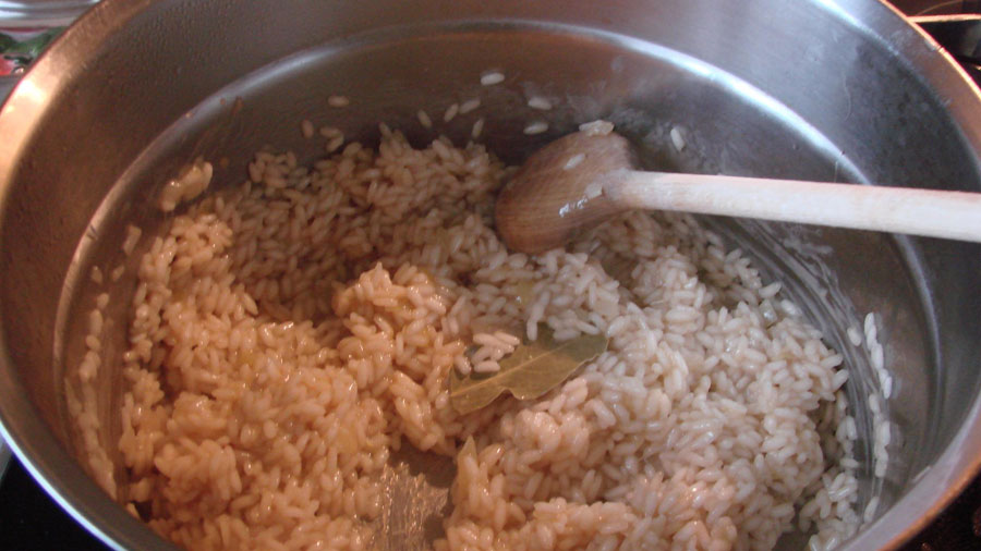 Tipp: Wichtig ist milde Hitze, das Risotto sollte immer feucht sein und sich gut rühren lassen.