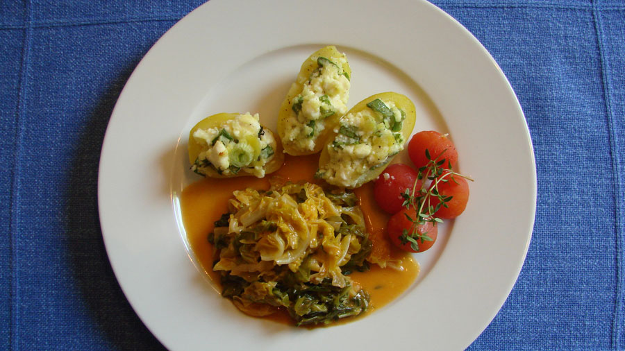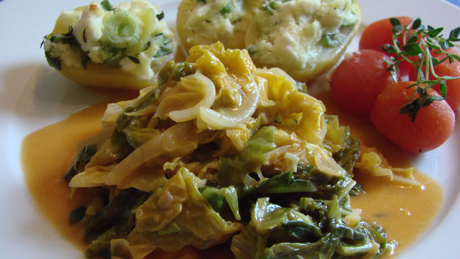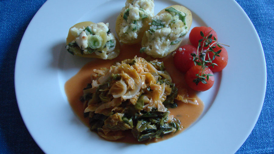 Tipp: Besonders gut schmeckt dieses Gemüse von dem ersten frischen Wirsingkohl im Mai, da er noch sehr zarte Blätter hat. Uns hat es auch sehr gut zu den mit Schafskäse gefüllten Kartoffeln geschmeckt.