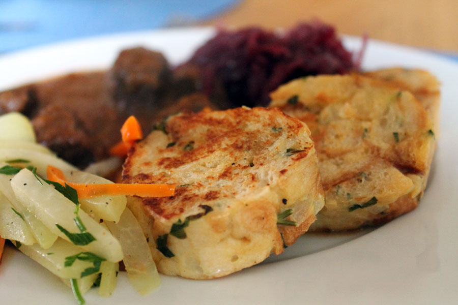 Serviettenknödel sind eine tolle Beilage für einen guten Braten mit Soße. Denn die Knödel brauchen reichlich Soße und werden so zum ultimativen Geschmackserlebnis.