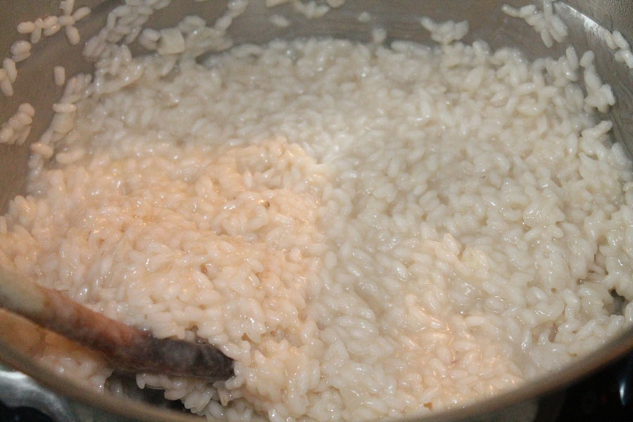 Tipp: Mit dem Nachgießen warten, bis der Risottoreis die Flüssigkeit vollständig aufgenommen hat.