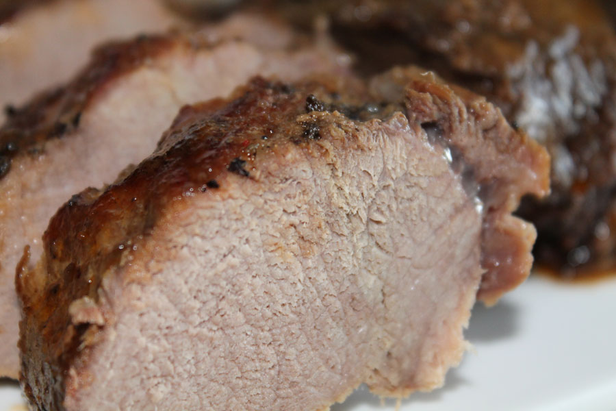Das Fleisch in Scheiben schneiden und mit der Sauce anrichten.
