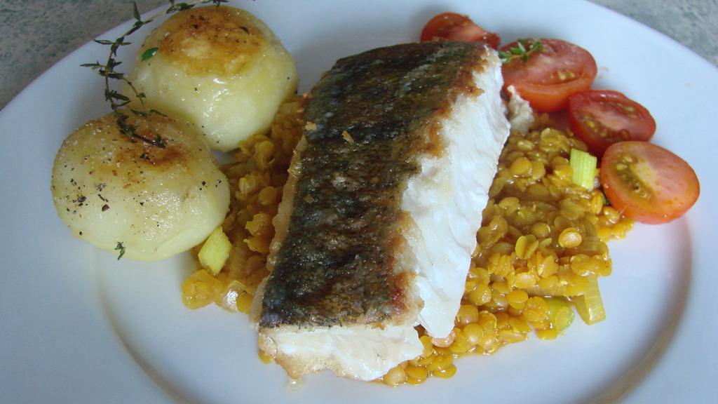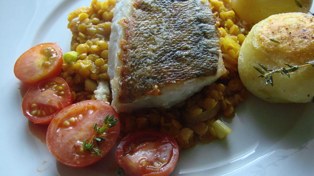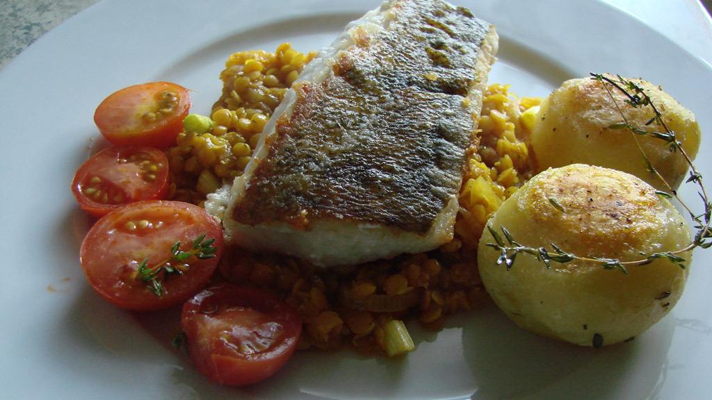 Zanderfilet auf roten Currylinsen