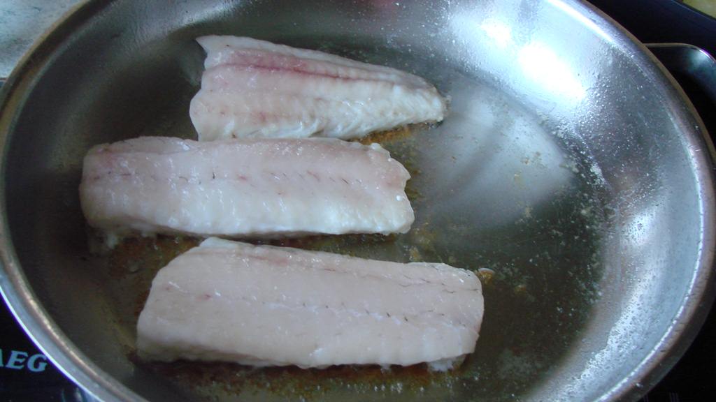 In einer Edelstahlpfanne Öl erhitzen und die Zanderfilets auf der Hautseite bei nicht zu starker Hitze goldbraun braten.