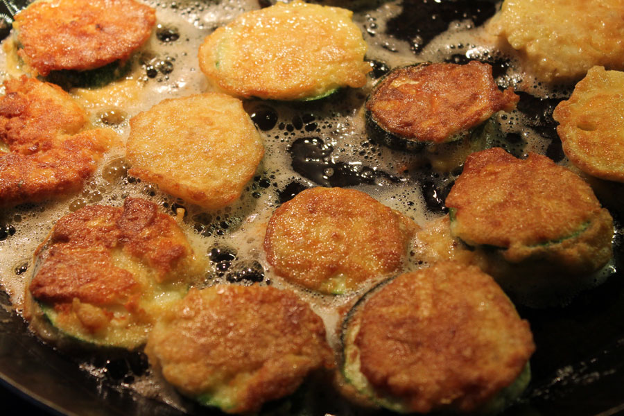 Wie bekommt man in eine Zucchini richtigen Geschmack hinein? Ganz einfach, man paniert Zucchini Scheiben mit einer Parmesan Mischung. Hier mein Rezept.